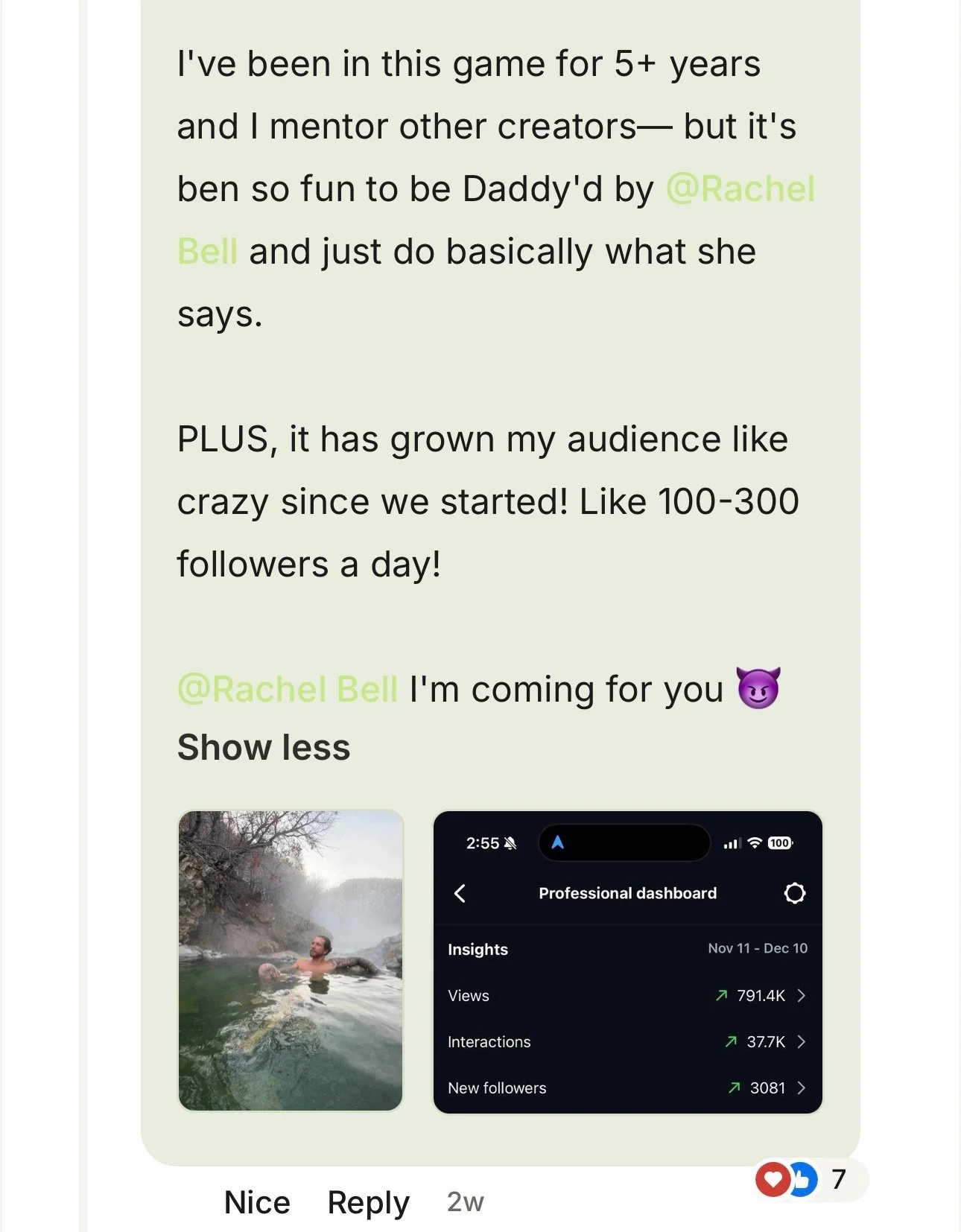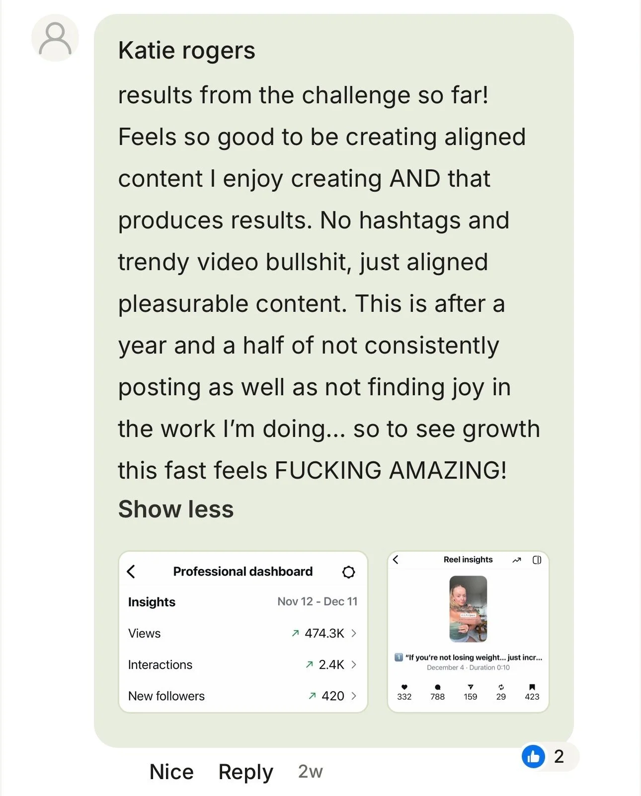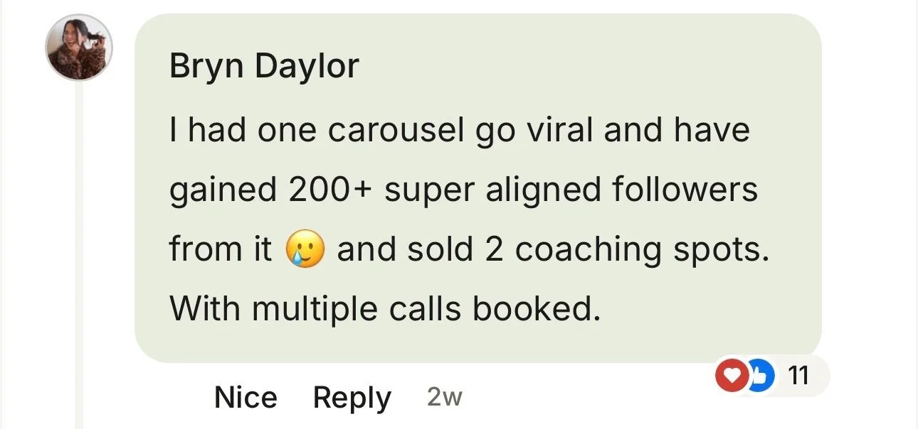 ✅ Creating two multi 7-figure companies with organic personal brand alone; one was a viral Instagram growth agency. The other was my coaching practice.